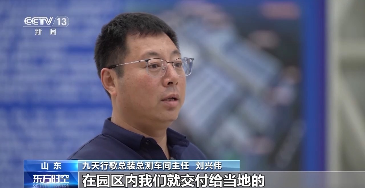 九天行歌总装总测车间主任 刘兴伟:贮箱测试合格完成后,在园区内我们就交付给当地的液体火箭发射公司,就是在方圆6公里之内足不出户就可以达到供需求的一个闭环。