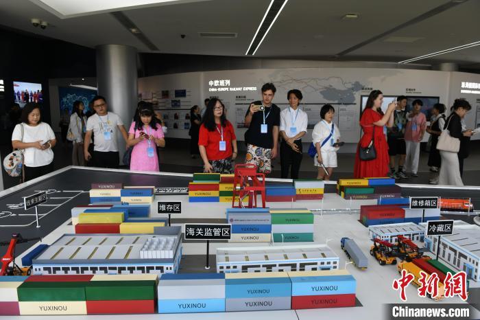 图为中外媒体代表在重庆国际物流枢纽园区展厅参观。 中新网记者 周毅 摄
