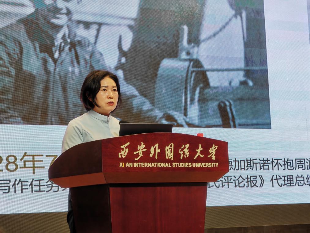 新华网西安9月12日电(记者李浩)“我们外语专业的同学,如何从国际传播角度,像斯诺夫妇一样向世界讲好中国故事?”西安外国语大学长安校区,报告厅内气氛热烈,延安革命纪念馆馆长刘妮引导着学生抛去提问。