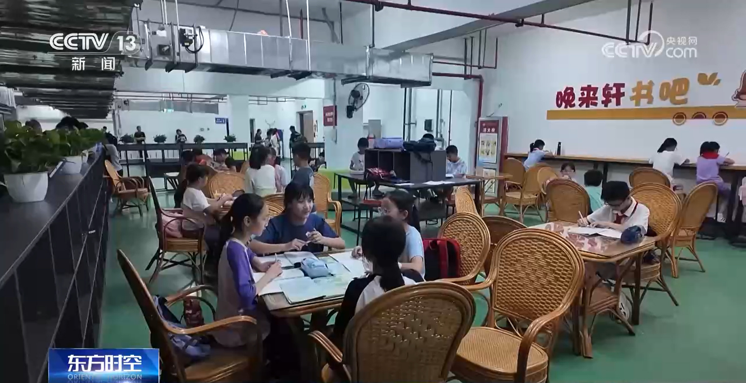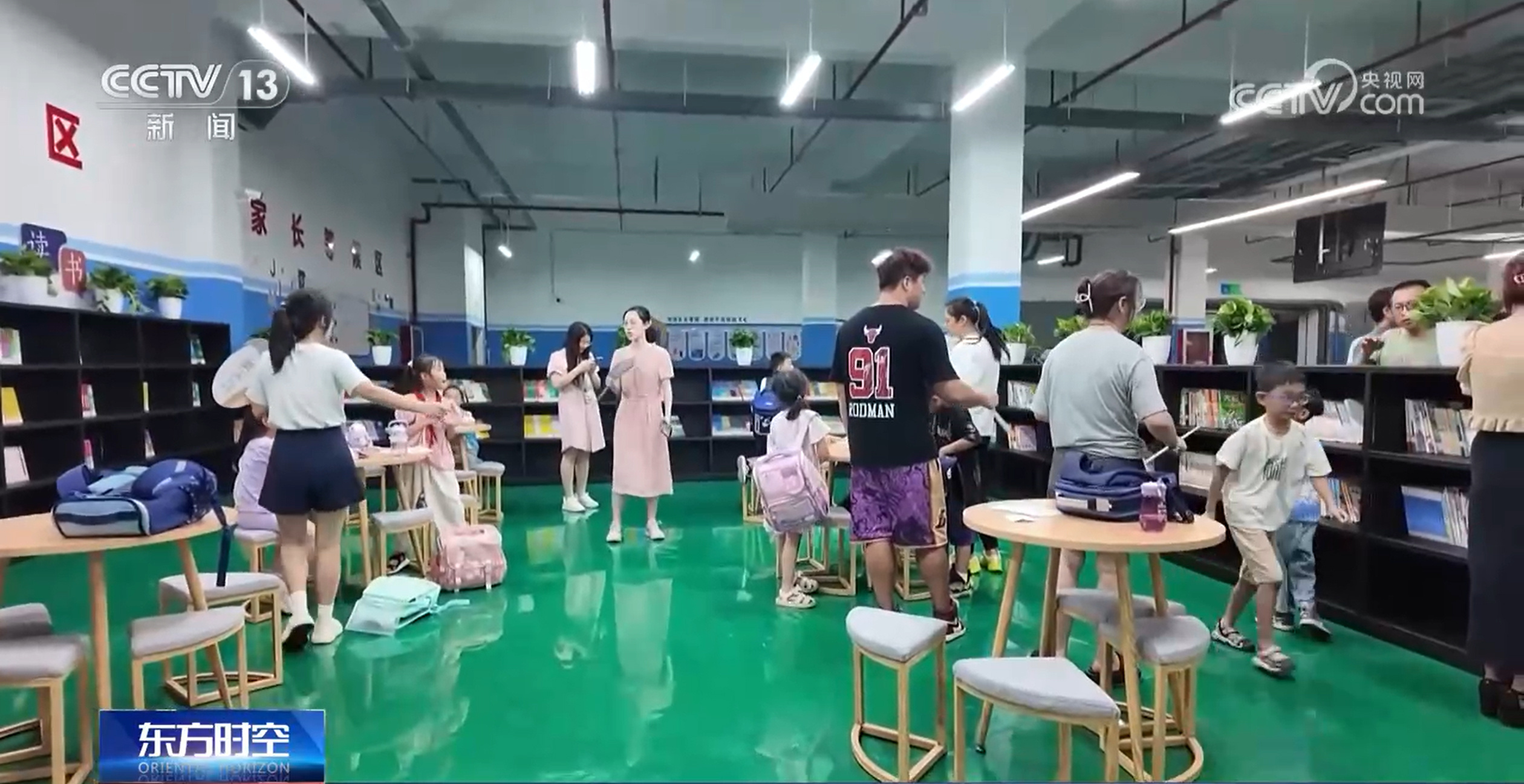 对于家长不能及时前来的学生,则可以在“专属接驳区”一旁的书吧内看书、写作业,同时,有家长志愿者在区域内负责学生安全。