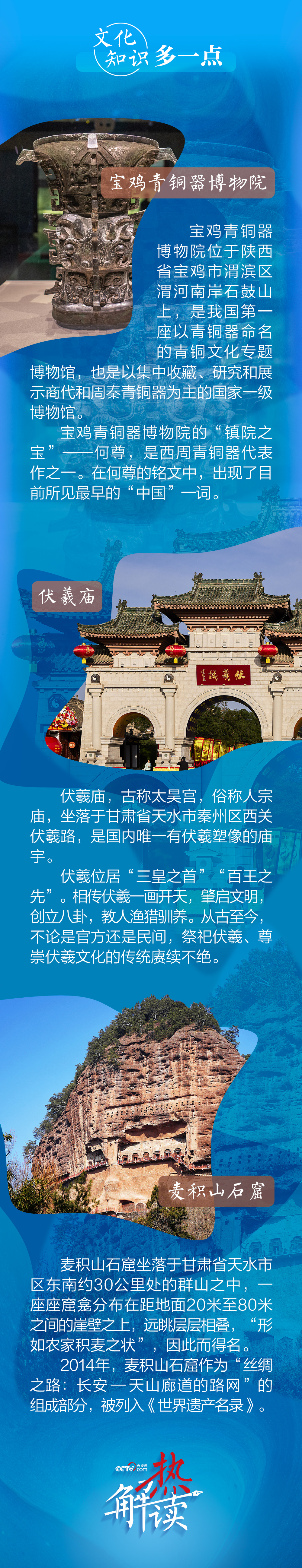热解读 9月10日下午至11日上午,习近平总书记先后来到陕西省宝鸡市和甘肃省天水市考察调研。此次陕甘行中,总书记专门考察了三处文化地标。