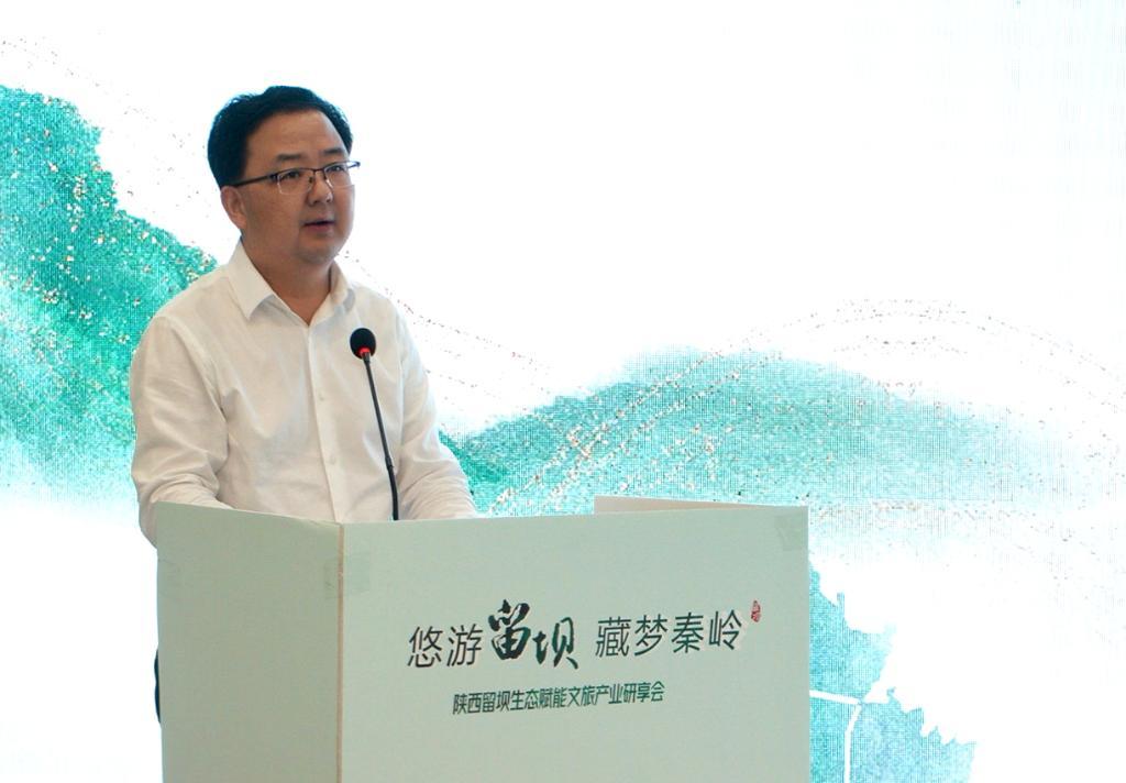 “悠游留坝 藏梦秦岭”陕西留坝生态赋能文旅产业研享会现场,留坝县县委常委尹鹏先在进行推介。