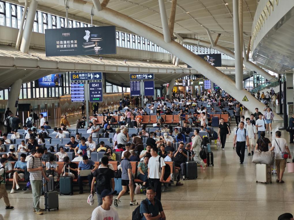 9月13日,旅客们在武汉站候车室候车。(杨泽宇 摄)