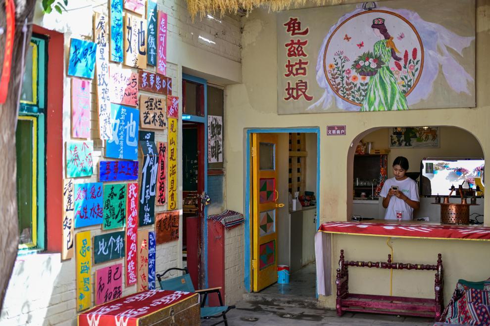 龟兹乐舞是中国传统歌舞艺术中的一块瑰宝,现存的克孜尔石窟壁画中就描绘了天宫伎乐、飞天伎乐等内容。在龟兹小巷,有一支乐舞表演团队每天在巷内巡演。“走起来、唱起来、演起来、互动起来,这也是传承我们乐舞文化的一种形式。”库车市文化馆馆长罗志娟说。
