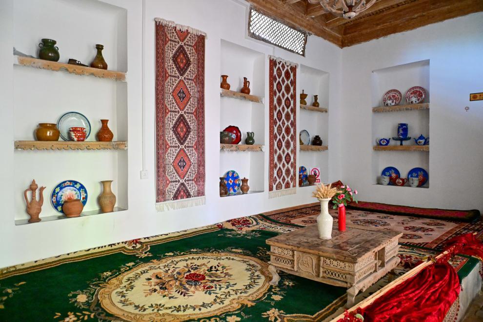 来到龟兹小巷,各式各样、色彩明艳的木门总能让游人目光停驻,推门入院又是另一番风景。走进“爷爷的家”旅游家访院,传统古建筑气息迎面而来,这座有上百年历史的民居融和了多民族建筑艺术特点,门窗设计、前檐廊木结构等与我国传统木构建筑一脉相承。