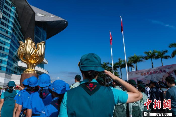图为青少年制服团队成员向国旗、区旗行礼。中新网记者 侯宇 摄