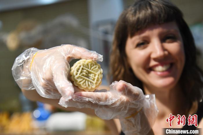 9月12日,阿根廷摄影艺术家娜塔莉亚·海姆在成都浓园国际艺术村体验制作月饼。中新社记者 张浪 摄
