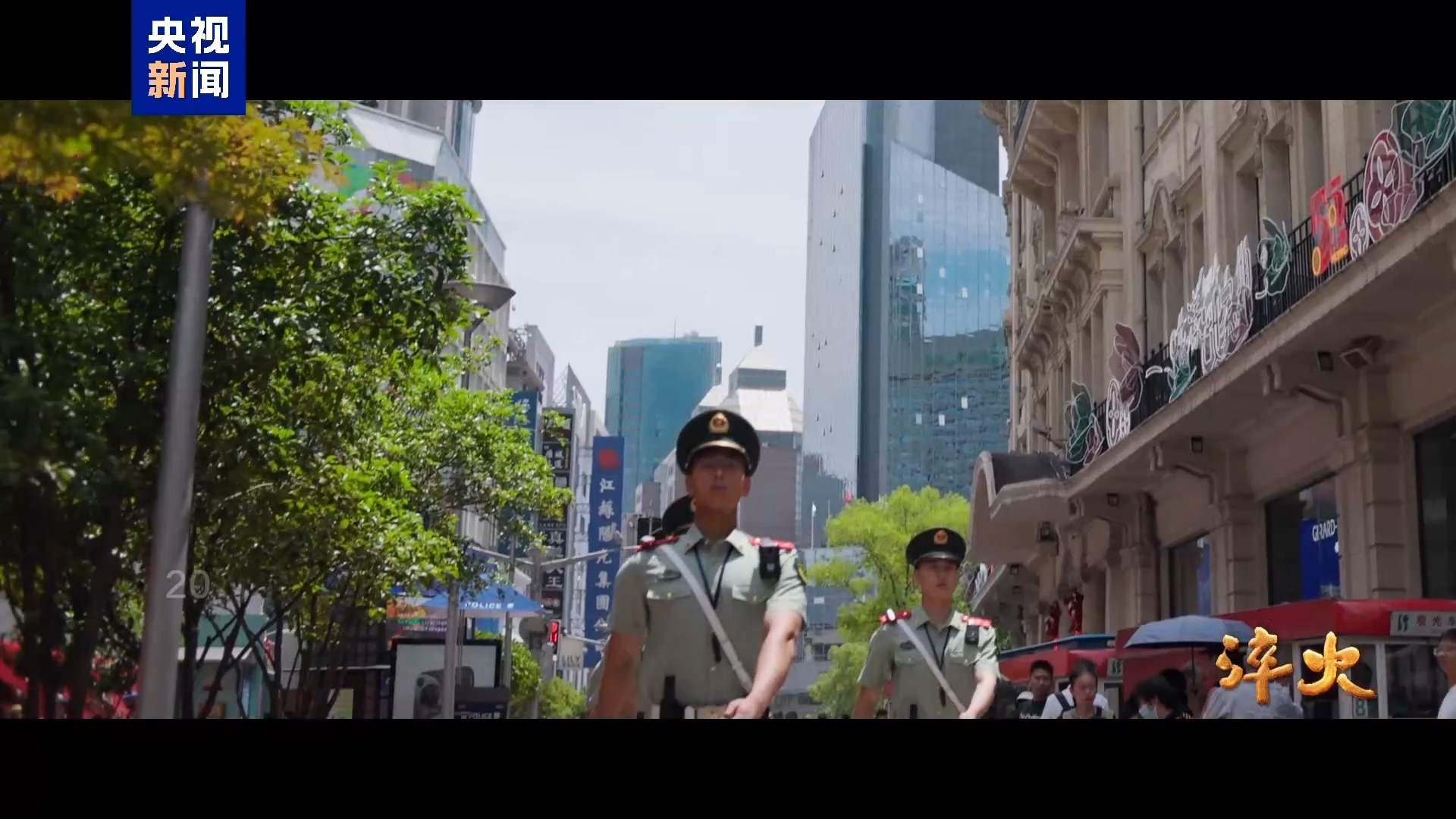 75年后,南京路步行街上,武警官兵依旧守护着这座城市的安宁。