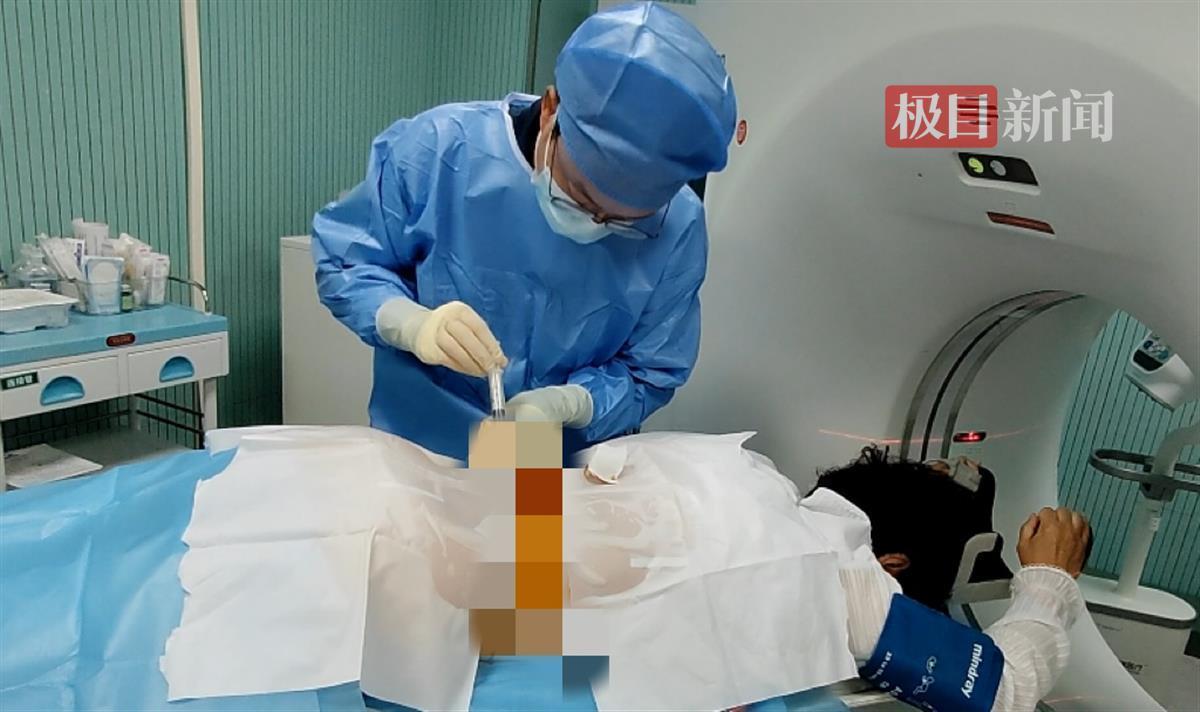 医生为患者实行腰交感神经射频毁损术