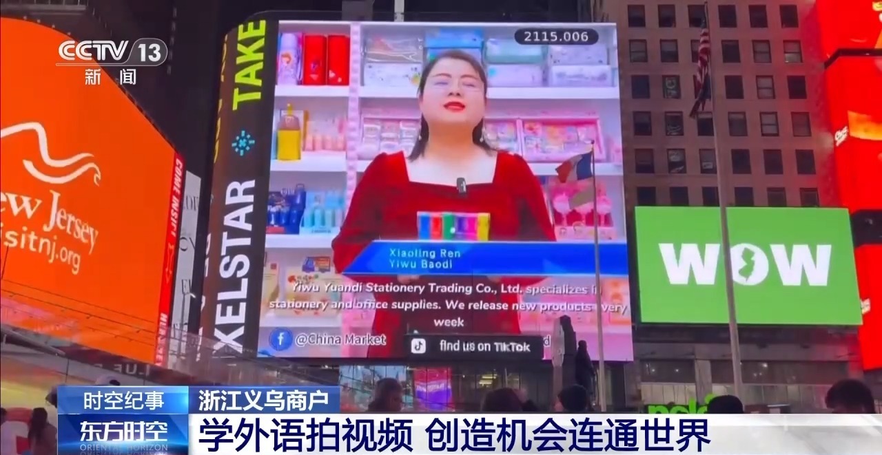 商户们录制的中文视频可以通过软件自动转化成36种语言。会说多国语言的“数字老板娘”火出了“圈”,也吸引了更多的客商。今年5月,她们登上了纽约时代广场的大屏。