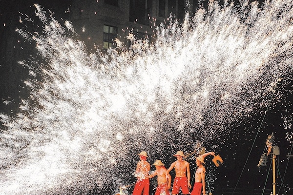 9月16日,中秋假期第二天,人们以丰富多彩的方式度过假日。武汉极地海洋公园,非遗打铁花在夜色中璀璨绽放(图一)。武汉光谷步行街举行“光谷华服节”,来自武汉多家高校社团及华服机构的1000多名华服爱好者,身着各色传统服饰展示华服之美,吸引众多市民游客驻足观赏(图二)。武汉东湖沙滩,小朋友们比赛滚“月饼”(图三)。楚天都市报极目新闻记者宋枕涛 李辉 通讯员鄂文旅摄