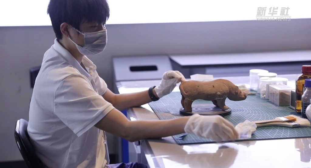 数字化让文物变得更好“看”, 而增强互动性则让文物变得“可触”“可感”。在《三峡出土文物保护利用展》上,博物馆将文物修复室搬进展厅,让观众近距离体验文物修复工作。