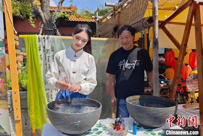 “一把扇子,轻轻地在这个桶里转一下,出来就是一件艺术品,这太不可思议了。”在景区非遗拓印摊位,看着手中的扇子,一名外籍游人连连称赞。