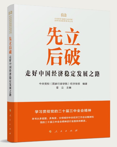 近日,由中央党校(国家行政学院)经济学部组织编写,曹立主编的《先立后破:走好中国经济稳定发展之路》一书由人民出版社出版。本书紧扣党中央对2024年经济工作的部署要求和二十届三中全会会议内容,从多层面、多角度、分领域对2023年中央经济工作会议精神和党的二十届三中全会精神进行全面系统解读,深刻分析了中国经济当前形势、增长态势和长远大势,帮助广大读者洞察时与势、把握稳和进、悟透立与破。