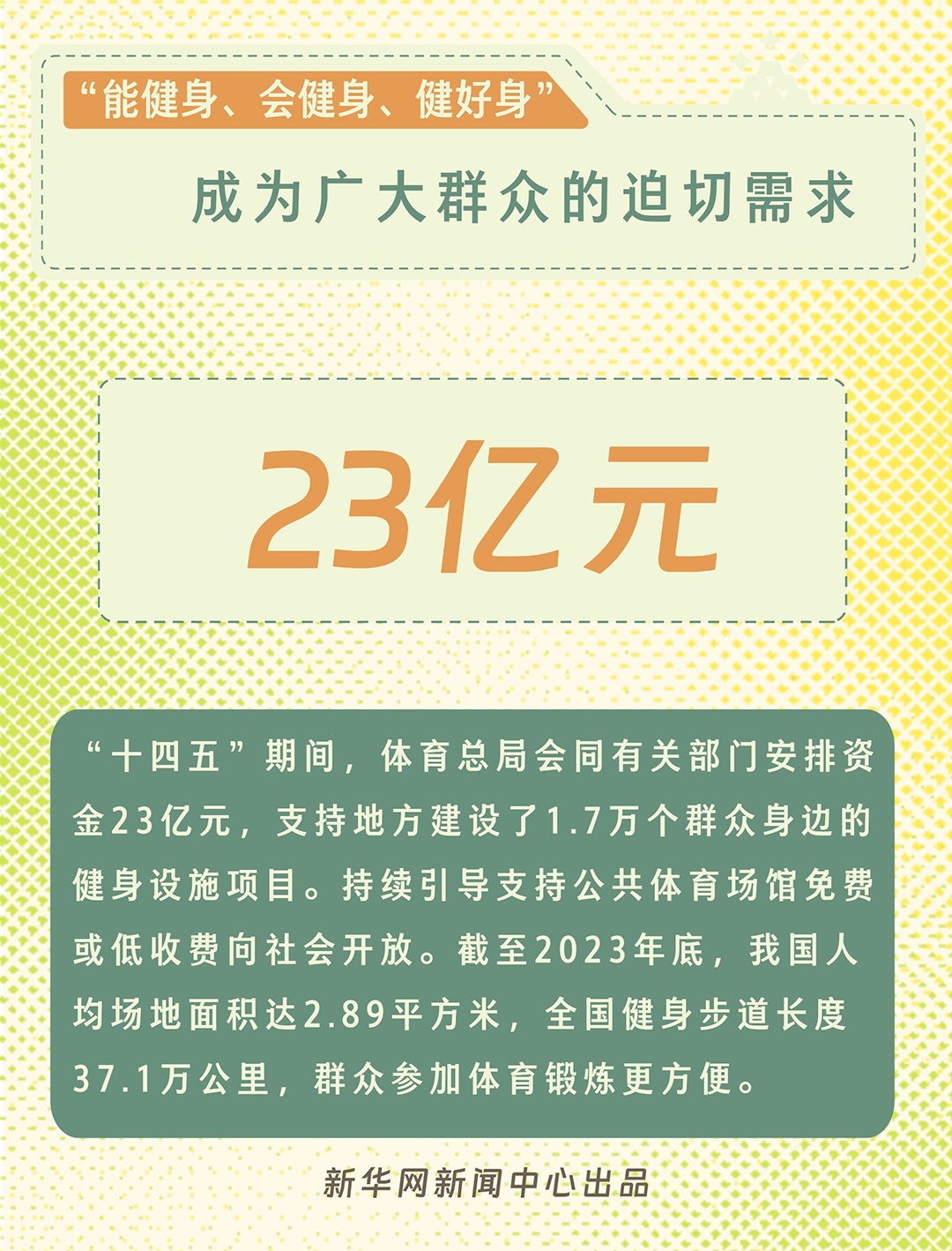 一是大力建设全民健身场地设施,确保群众“能健身”。出台一系列政策和标准,推进体育公园、全民健身中心、健身步道、社会足球场、群众滑冰场、社会化健身设施等建设工作。
