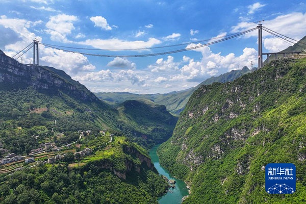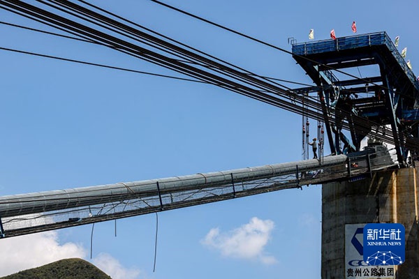 新华社贵阳9月18日电(记者欧东衢、向定杰、郭可树)耳畔是呼啸的山风,脚下有轻微的晃动……时隔一年多,记者再次来到花江峡谷大桥施工现场,体验了一次“高空行走”,也感受到了建设者的匠心。