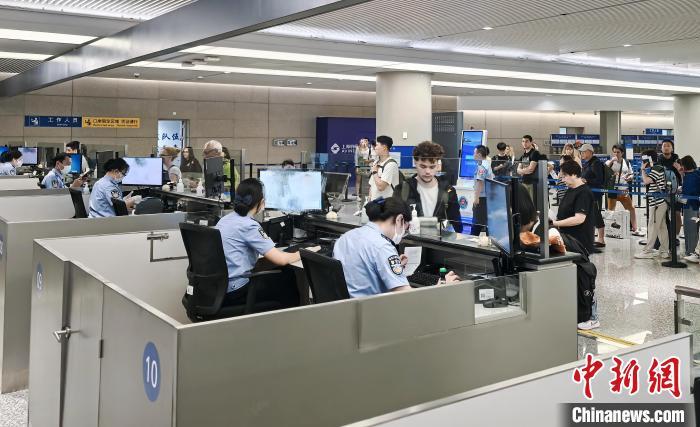 虹桥边检站民警为备降航班旅客办理入境手续。 余渝欢 摄