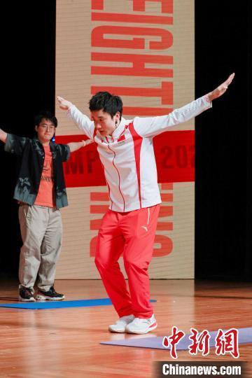 活动中,张雨霏、曹缘、邹敬园、李雯雯先后进行了主题分享,讲述他们的成长经历、训练比赛故事等。随后在与学生的互动环节中,4位奥运冠军回答了学生们关心的问题,还与学生代表进行了近距离交流互动。张雨霏带领大家跳起了游泳运动员的训练前热身舞,曹缘示范了模拟跳水的陆上动作,邹敬园进行了双杠教学,李雯雯跟大家进行了一场“举重”比拼。