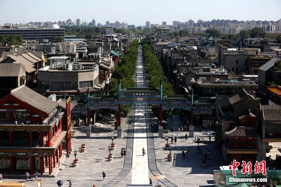 在北京正阳门箭楼拍摄的北京中轴线。中新社记者 富田 摄