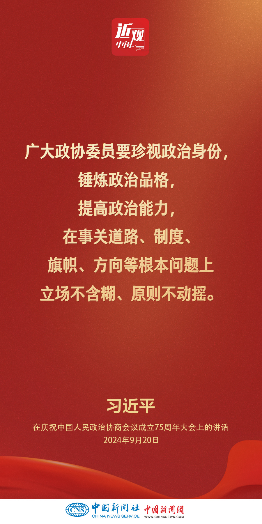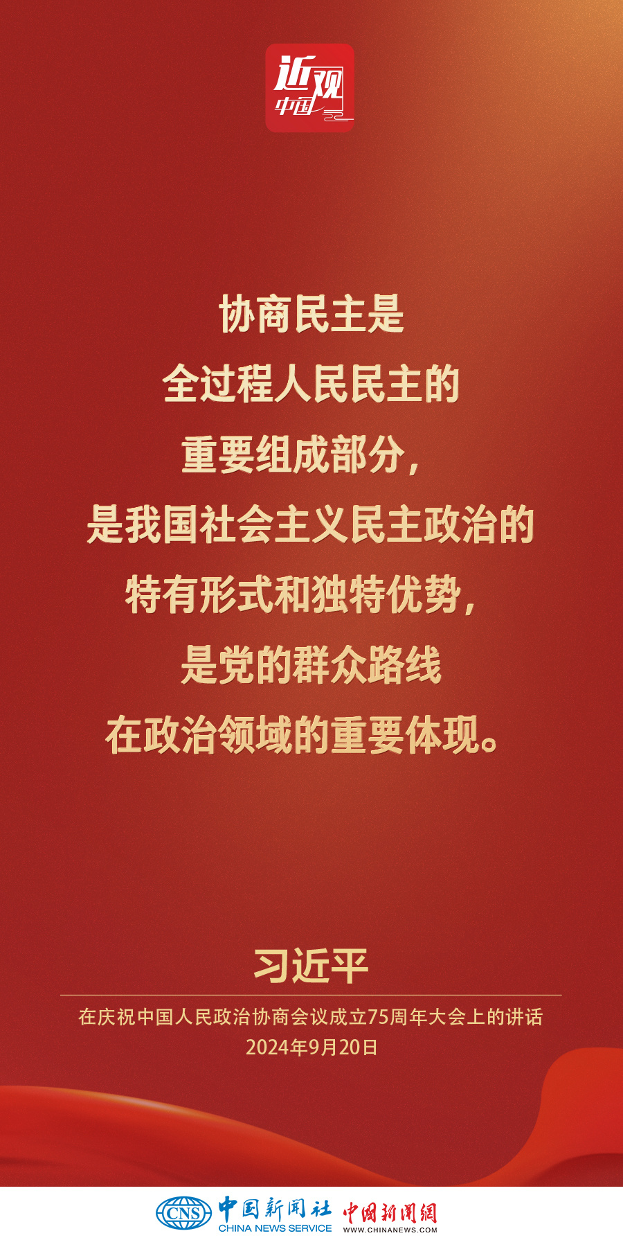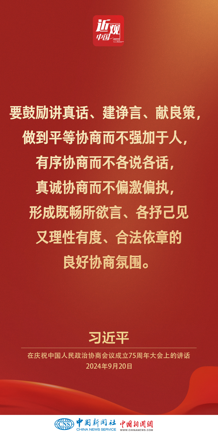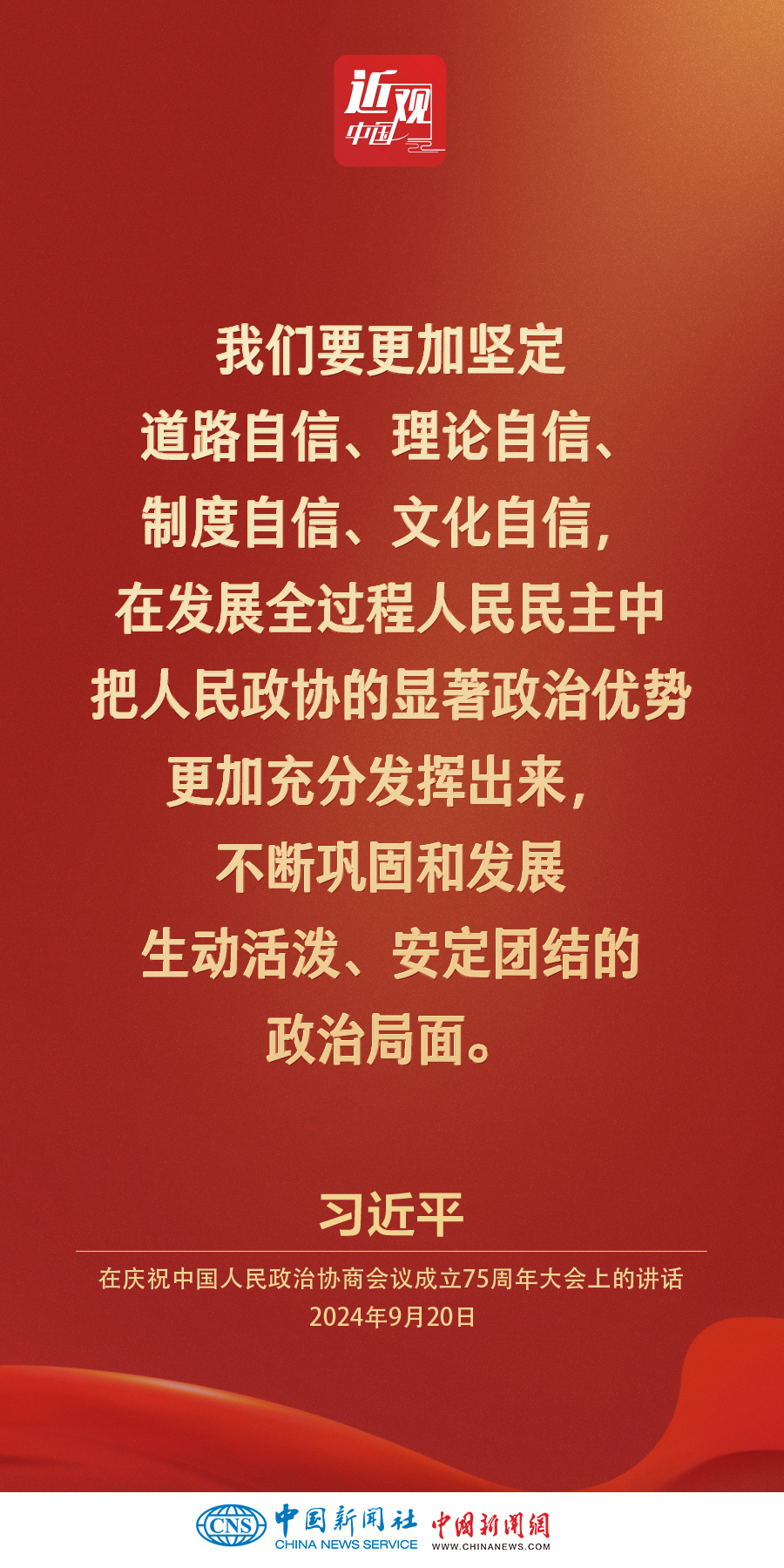 中共中央、全国政协20日上午在全国政协礼堂隆重举行庆祝中国人民政治协商会议成立75周年大会。中共中央总书记、国家主席、中央军委主席习近平出席大会并发表重要讲话。他强调——