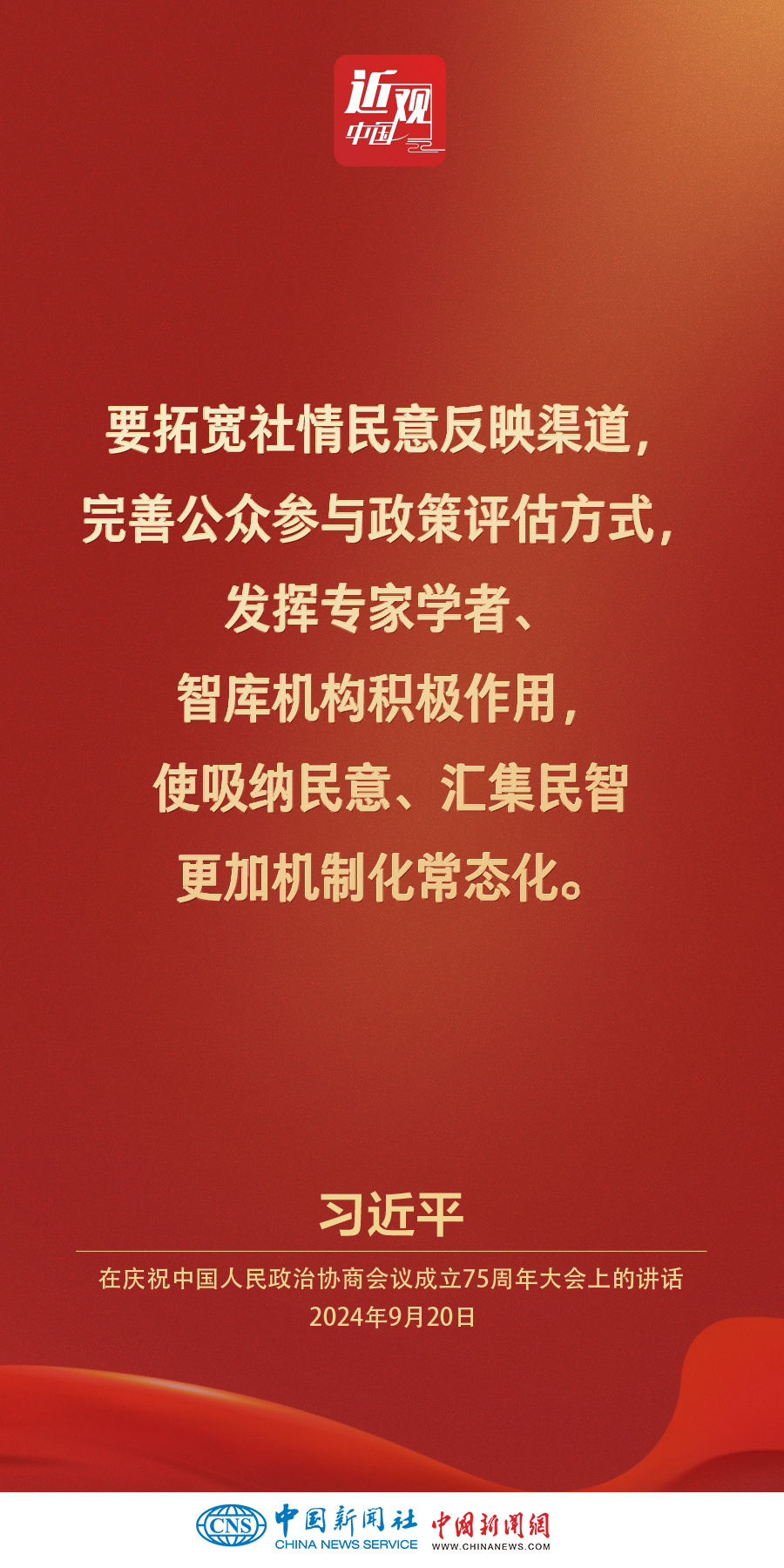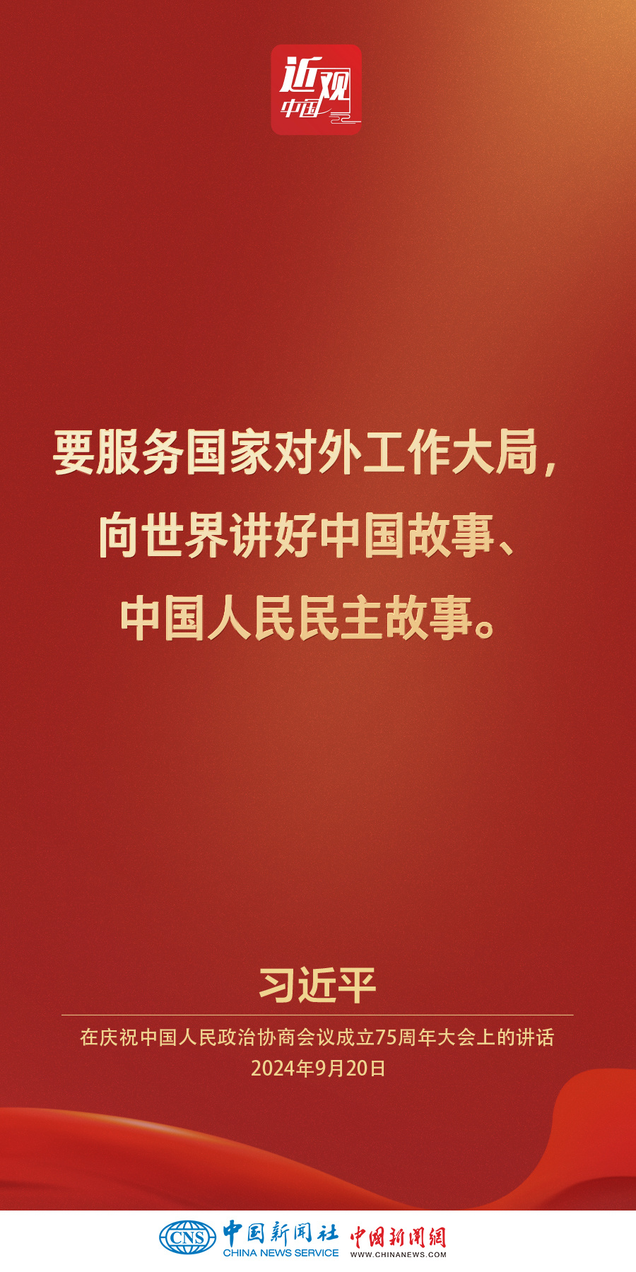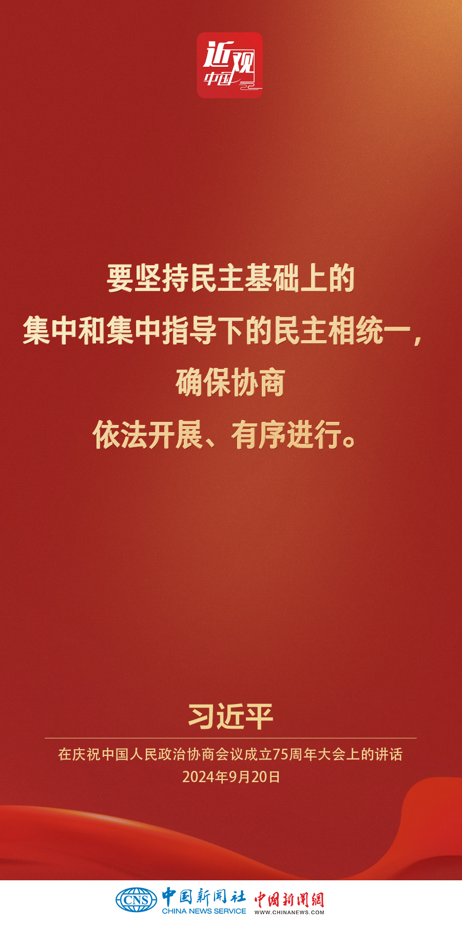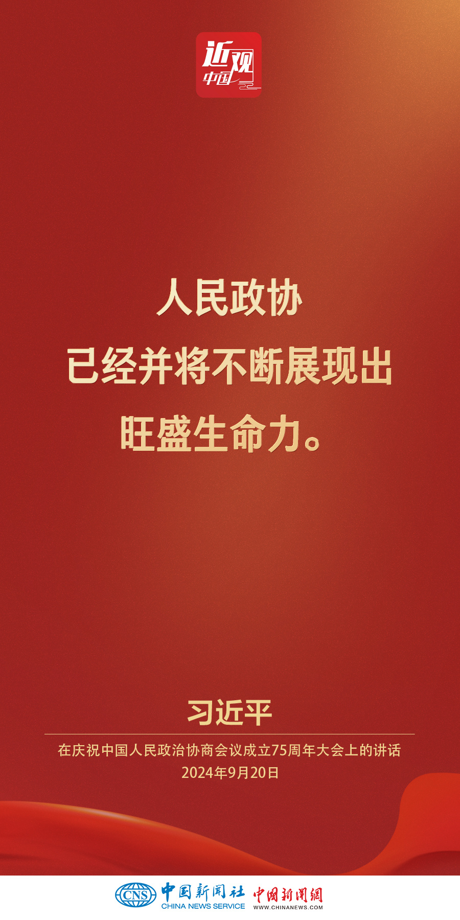 中共中央、全国政协20日上午在全国政协礼堂隆重举行庆祝中国人民政治协商会议成立75周年大会。中共中央总书记、国家主席、中央军委主席习近平出席大会并发表重要讲话。他强调——