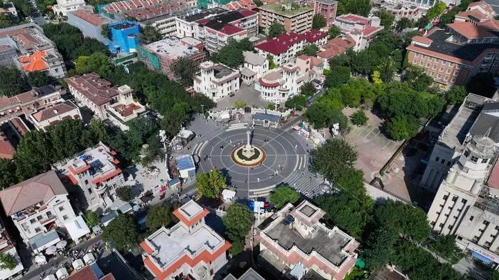 这是天津意式风情区马可波罗广场及周边意大利风格洋楼建筑群。新华社记者 孙凡越 摄