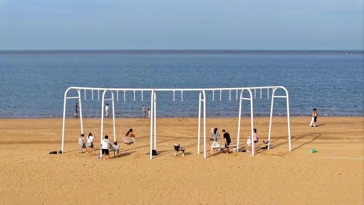 人们在天津东疆湾景区游玩休闲。新华社记者 孙凡越 摄