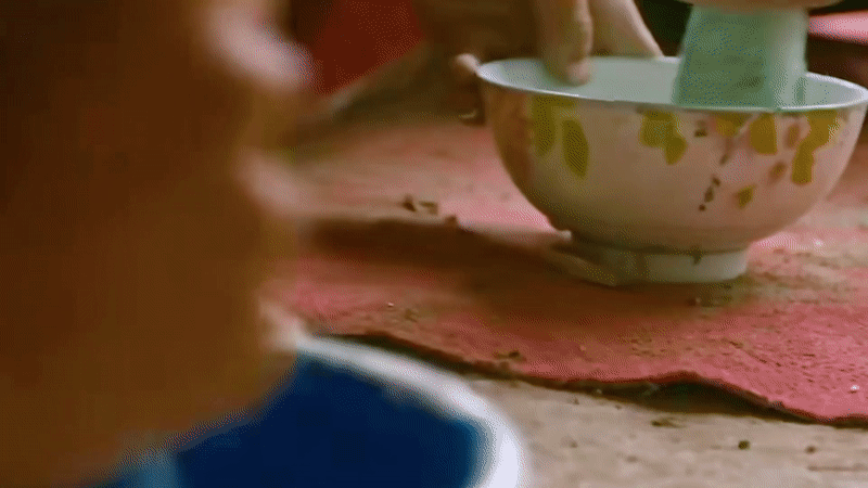 “树有千条枝,树根才是本。”嘎玛德勒教导学生时说,不论大小,画师绘制唐卡时要净手,保持内心的宁静与虔诚。