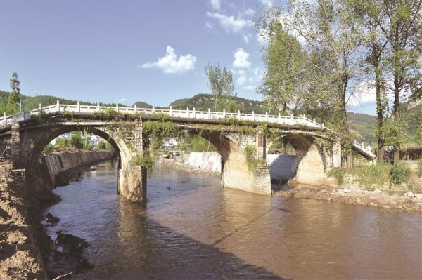 清代建成以勒河石拱桥,桥长54.3米,宽5.4米,由长方形石块镶砌,被誉为“乌江源头第一石拱桥”。