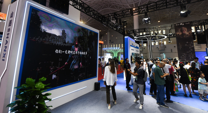数博会上,国产游戏《黑神话:悟空》备受瞩目。山西展团以游戏中“悟空”路线为主题,重点展示了一批介绍山西古建筑、历史文化遗产的出版物,“悟空拍照区”成了“热门打卡地”。