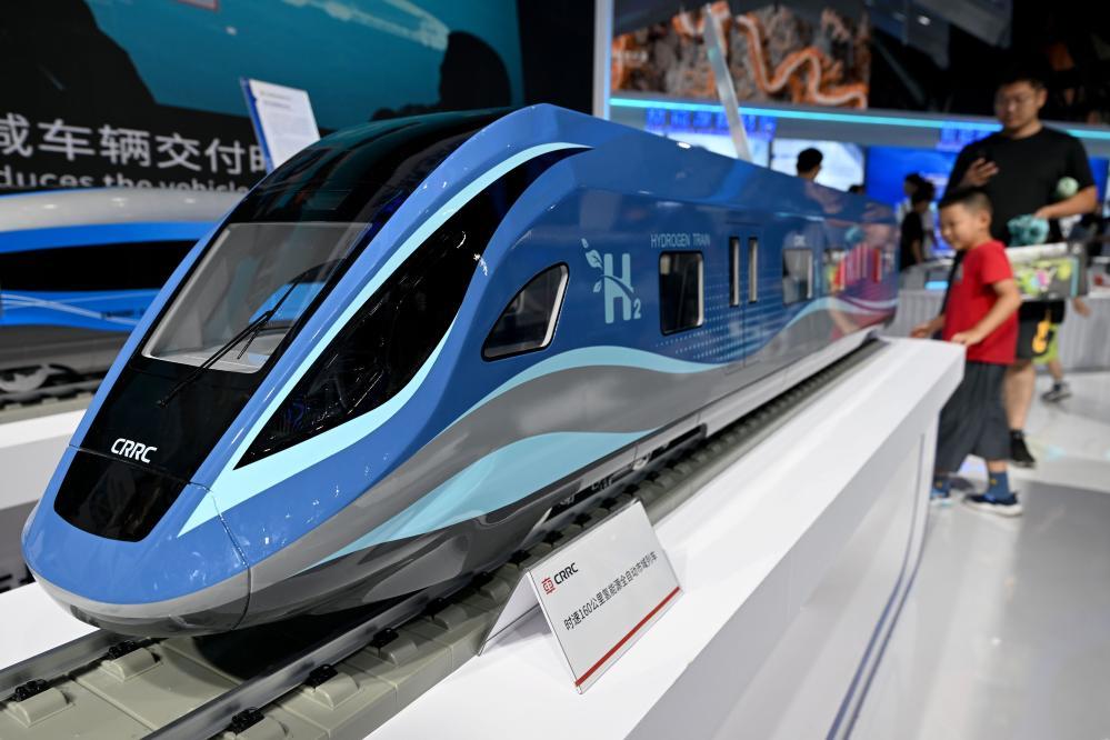 9月21日,在2024世界制造业大会上,人们参观氢能源全自动市域列车模型。新华社记者 黄博涵 摄