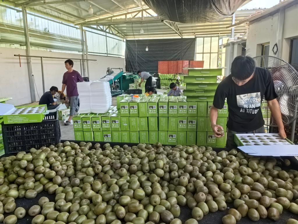 9月19日,在岳西县古坊乡徐志鹏的果园分拣仓库,工人正在给猕猴桃打包发货。新华社发。(受访者供图)