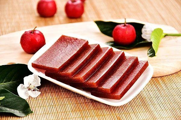 自制无糖山楂糕:山楂去核蒸熟,放入料理机中,加水打制成泥,再将山楂泥倒入锅中,加入雪梨甘草汁一起熬煮至黏稠,倒入玻璃碗中冷藏30分钟即可。