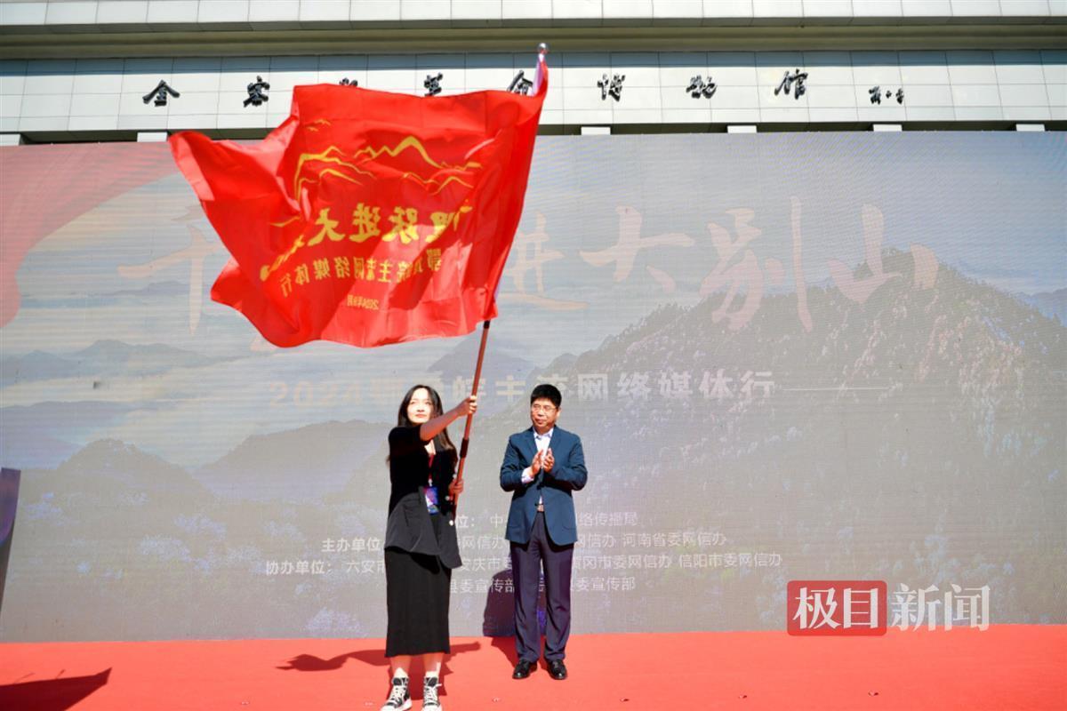 中央网信办网络传播局负责同志为“千里跃进大别山”2024鄂豫皖主流网络媒体行授旗