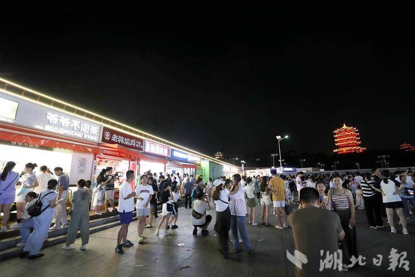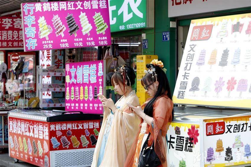 记者看到,市集入驻商家以奶茶、咖啡为主,各门店前顾客络绎不绝,不时排起长队。庞大的人流还涌往停车场外一条不足500米的市井小巷——青龙巷。走进巷中,老武汉的生活气息扑面而来。小巷两侧的房屋一楼均是商铺,二楼则是住户。商户里既有热干面、炒枯豆丝、藕汤、锅盔等地方传统美食,也有像冰粉、竹筒茶、烤苕皮这样的新晋网红美食,还有售卖黄鹤楼雪糕、明信片、钥匙扣的文创礼品店。“我在武汉等你一起看黄鹤楼”“顺便牵手逛逛青龙巷”等文旅招牌,吸引众多年轻人拍照留影。