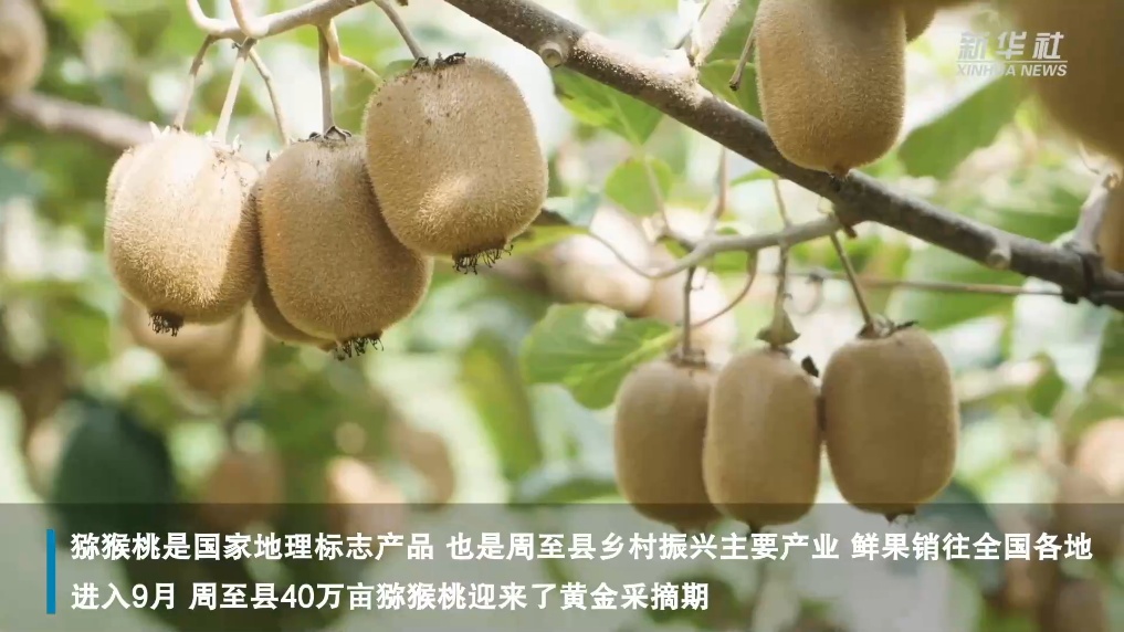 陕西省周至县是猕猴桃产业示范基地,被誉为“中国猕猴桃之乡”,周至猕猴桃是国家地理标志产品,也是周至县乡村振兴主要产业,鲜果销往全国各地。进入9月,周至县40万亩猕猴桃迎来了黄金采摘期。