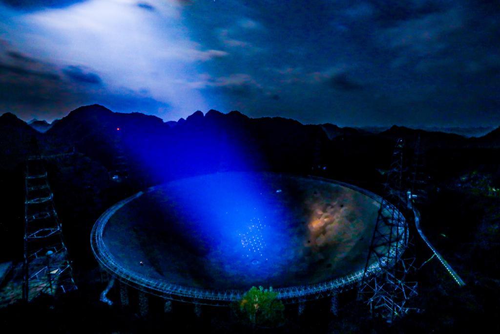2022年7月24日,银河中的“中国天眼”(无人机光绘,维护保养期间拍摄)。