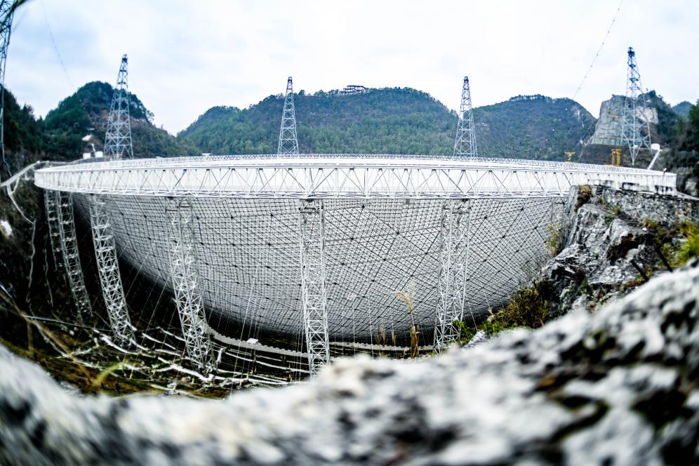 2016年4月10日,工作人员在安装“中国天眼”的反射面板。