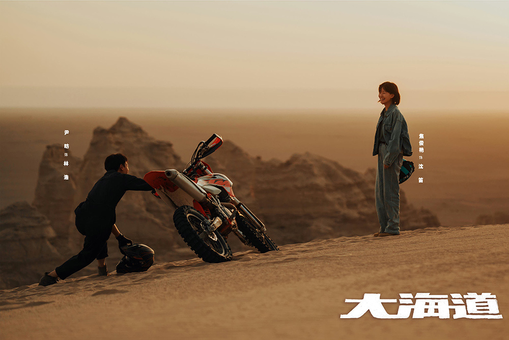 山岭、戈壁、漫天黄沙,青年、摩托、速度与激情。电视剧《大海道》凭借壮美神秘的西部风貌和青春热血的逐梦故事,将观众带入充满活力与热爱的人文画卷之中。该剧作为庆祝中华人民共和国成立75周年“与时代同行 与人民同心”重点展播电视剧,由国家广播电视总局重点指导,新疆维吾尔自治区党委宣传部作为联合摄制单位参与拍摄,新疆自治区广电局全力协助,剧集既有青年追梦的竞技之美,亦有新疆美食美景美如画的生活之美,将地域特色与人文建设融合,展现出这片辽阔土地的生机与活力。