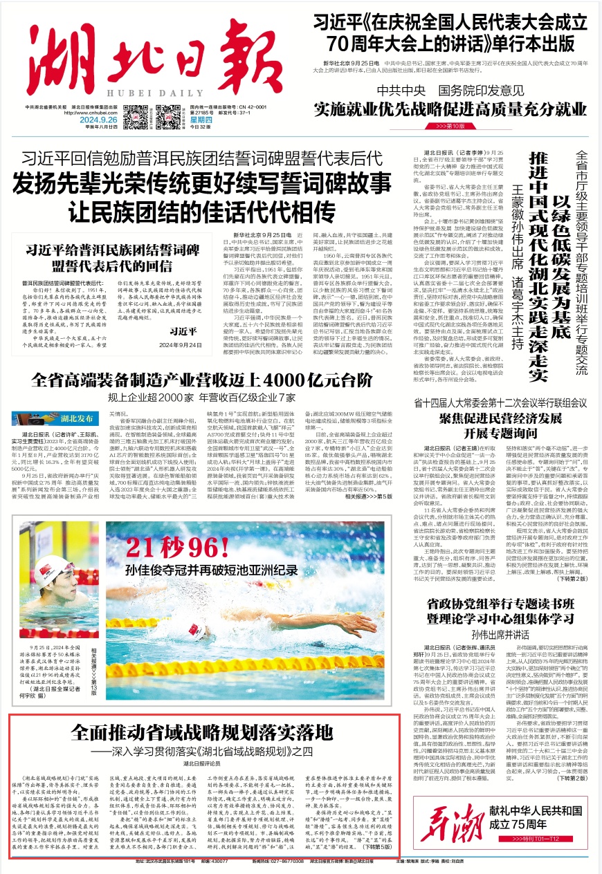 湖北在全国率先出台具有法律效力的省域战略规划,对全省发展作出了全局性、综合性、长期性的战略谋划。这份凝聚全省智慧力量、谋定发展前进方向的省域战略规划,是湖北全面贯彻落实党的二十届三中全会精神的重要举措,是把省委十二届七次全会关于建立健全规划统筹机制改革部署抓实抓细抓到位的重要载体,是奋力推进中国式现代化湖北实践的统领性规划。我们要充分认识省域战略规划的重大意义,充分认识从全局谋划区域、以区域服务全局的湖北思考、湖北谋划、湖北行动,充分认识湖北以规划为引领推进经济社会高质量发展的进取之姿、奋进之为,以强烈的使命感、责任感和紧迫感,把宏伟蓝图变成美好现实。