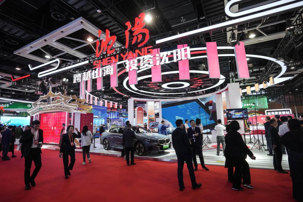 与会嘉宾在辽洽会消费创新主题展览上参观。新华社记者潘昱龙摄