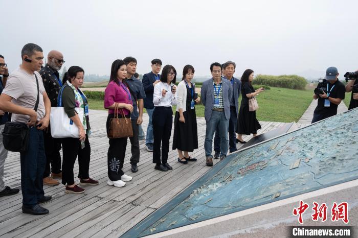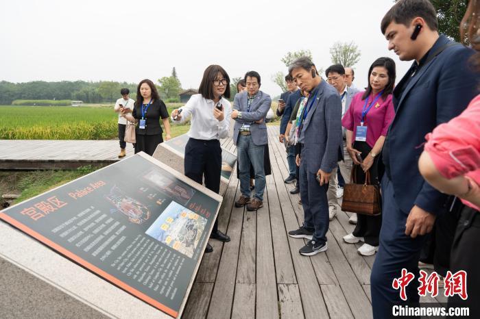 9月26日,市长(市长代表)走进良渚古城遗址公园。当日,作为“世界市长对话·杭州”暨第九届杭州国际友城市长论坛的系列活动,来自马来西亚、塞内加尔、伊朗等多个国家和地区的市长(市长代表)走进位于浙江杭州的良渚古城遗址公园,感受中华文明魅力。中新社记者 鲍梦妮 摄