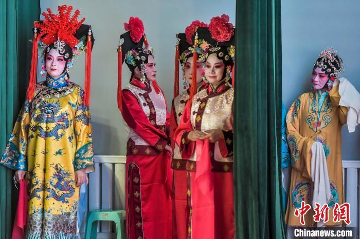 9月26日,新疆乌鲁木齐市文化馆,戏曲爱好者在场边候场,准备登台表演,角逐该市第21届中老年艺术节决赛戏曲类比赛。本届中老年艺术节参赛门类包括舞蹈、声乐、健身、综合、戏曲等,吸引众多中老年文艺爱好者登台献艺、各展才华。中新社记者 刘新 摄