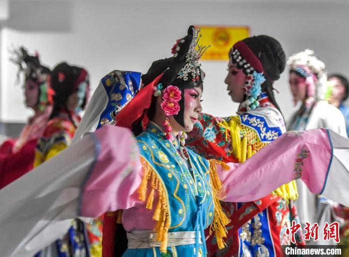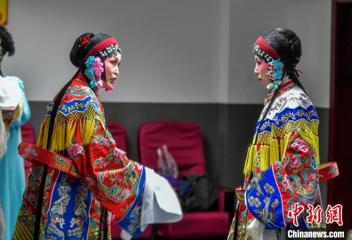 9月26日,新疆乌鲁木齐市文化馆,戏曲爱好者在后台练习,准备登台表演,角逐该市第21届中老年艺术节决赛戏曲类比赛。本届中老年艺术节参赛门类包括舞蹈、声乐、健身、综合、戏曲等,吸引众多中老年文艺爱好者登台献艺、各展才华。中新社记者 刘新 摄