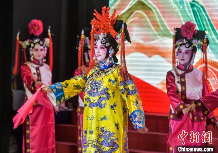 9月26日,新疆乌鲁木齐市文化馆,戏曲爱好者登台表演,角逐该市第21届中老年艺术节决赛戏曲类比赛。本届中老年艺术节参赛门类包括舞蹈、声乐、健身、综合、戏曲等,吸引众多中老年文艺爱好者登台献艺、各展才华。中新社记者 刘新 摄