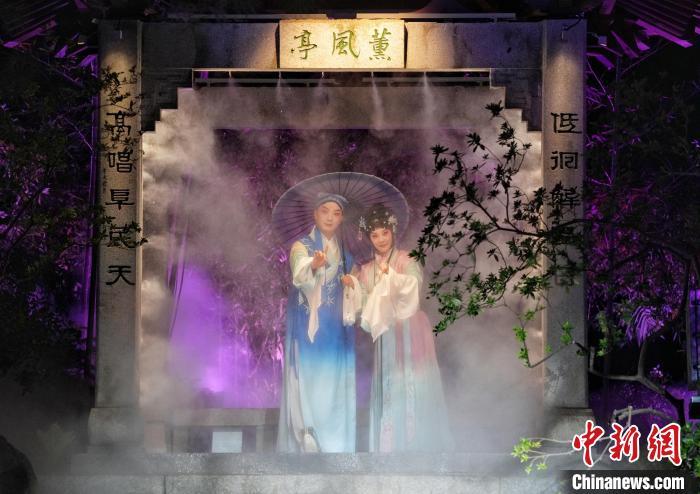 湘剧《拜月记》名段《抢伞》讲述了两位年轻人因伞结缘的故事。中新网记者 杨华峰 摄