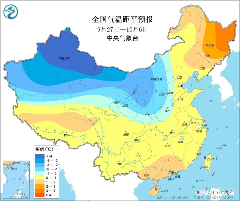 未来10天(9月27日-10月6日),西北地区东部、华北地区西部和北部、东北地区东部、江南东部、西南地区东部、青藏高原东部和南部等地累计降水量有20~50毫米,四川盆地、江南东部沿海、台湾岛等地部分地区有60~120毫米,台湾岛东部局地超过250毫米;上述大部地区降雨量较常年同期显著偏多,我国其余大部降雨偏少。