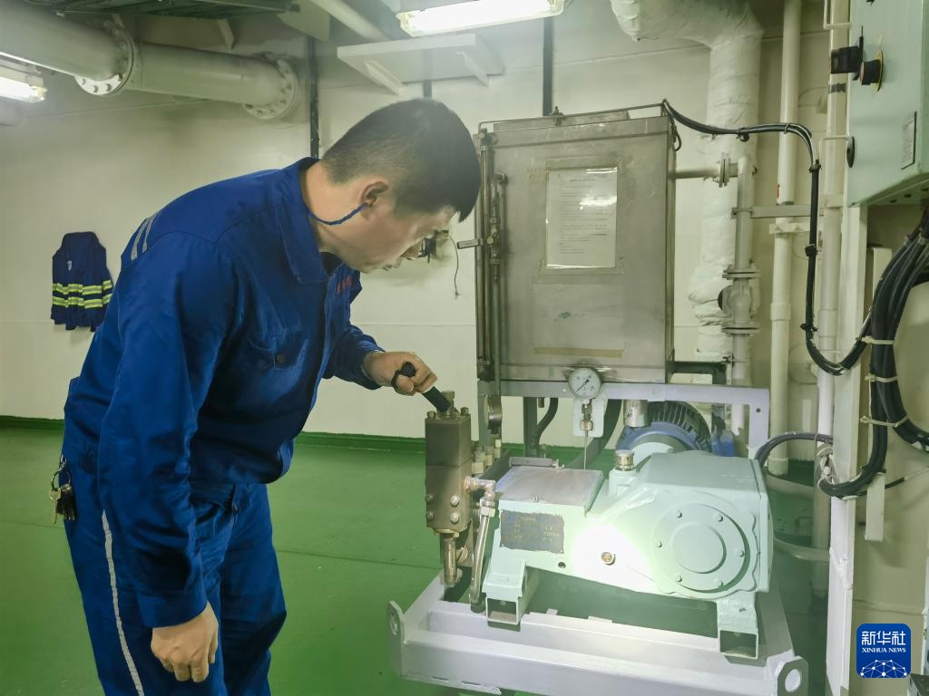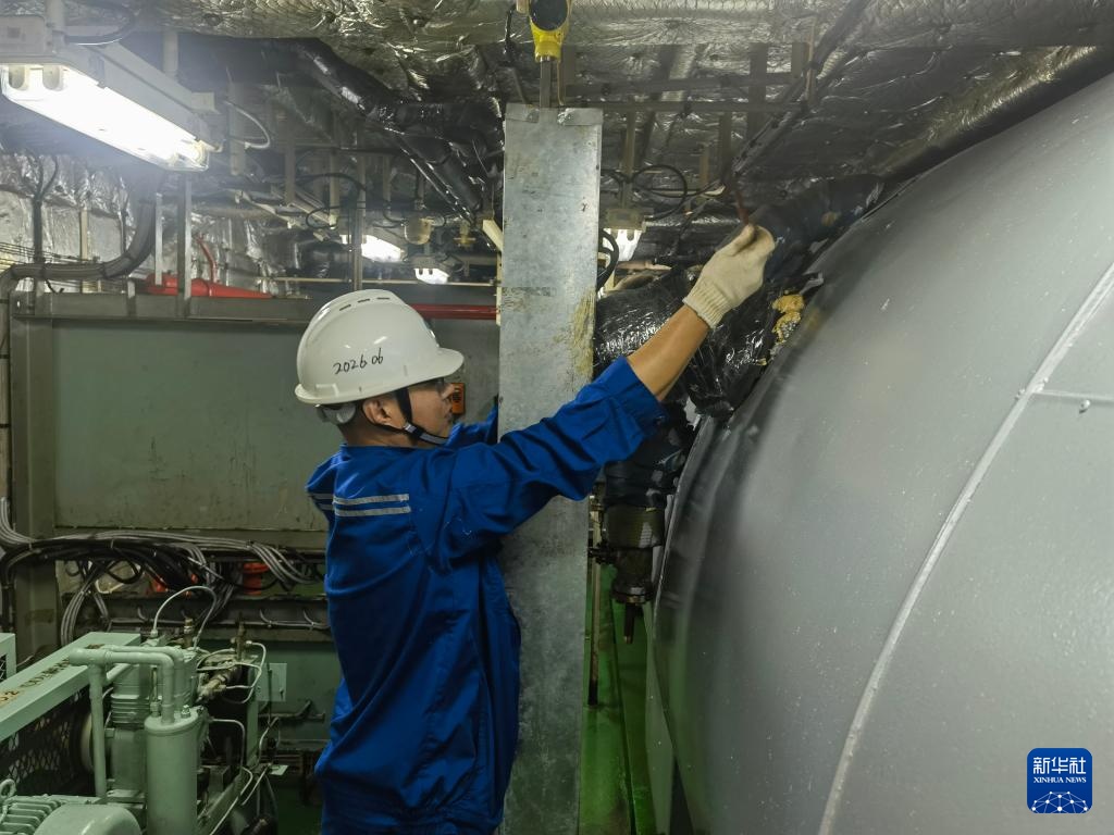 9月26日,工作人员在中铁渤海号渡船检查设备运行情况。