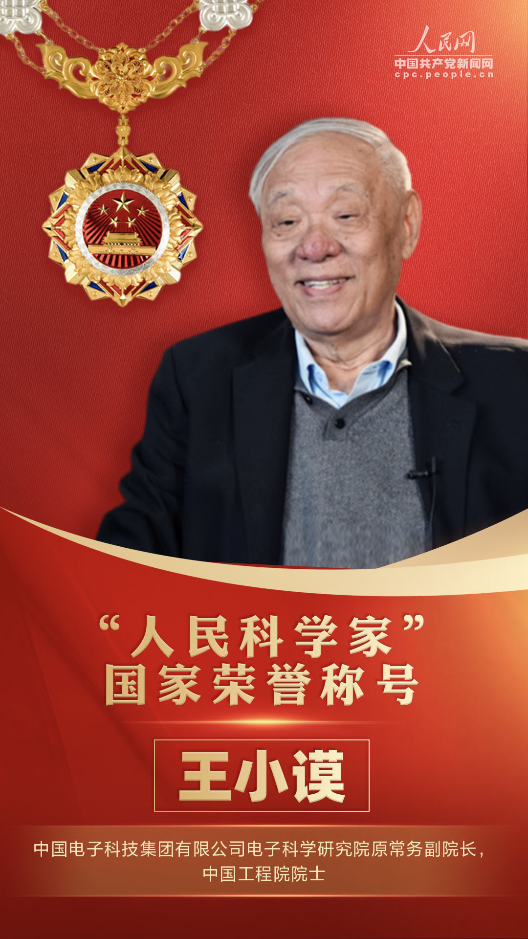 为了庆祝中华人民共和国成立75周年,隆重表彰为新中国建设和发展作出杰出贡献的功勋模范人物,弘扬民族精神和时代精神,根据第十四届全国人民代表大会常务委员会第十一次会议的决定,授予王小谟等10人国家荣誉称号。