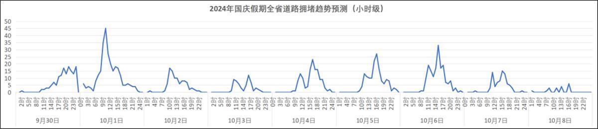 预计今年国庆假期,拥堵时段主要集中在9月30日17-23时、10月1日9-13时、10月6日15-20时。